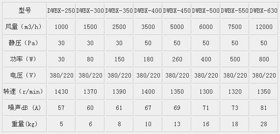 DWBX板壁式軸流風(fēng)機(jī)一般用于排風(fēng),如用于送風(fēng)需在訂貨時(shí)另行說(shuō)明。